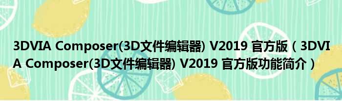 导读 大家好,关于3DVIA Composer(3D文件编辑器) V2019 官方版,3DVIA Composer(3D文件编辑器) V2019 官方版功能简介这个很多人还不知道,小