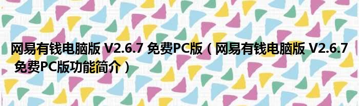 网易有钱电脑版 V2.6.7 免费PC版(网易有钱电脑版 V2.6.7 免费PC版功能简介)