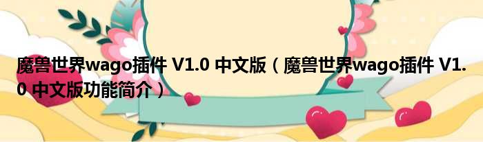 魔兽世界wago插件 V1.0 中文版(魔兽世界wago插件 V1.0 中文版功能简介)
