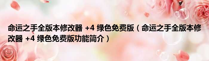 导读 大家好,关于命运之手全版本修改器 +4 绿色免费版,命运之手全版本修改器 +4 绿色免费版功能简介这个很多人还不知道,小勒来为大家解答以
