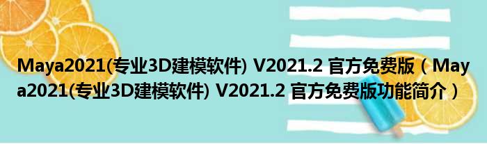 Maya2021(专业3D建模软件) V2021.2 官方免费版(Maya2021(专业3D建模软件) V2021.2 官方免费版功能简介)