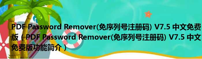 PDF Password Remover(免序列号注册码) V7.5 中文免费版(PDF Password Remover(免序列号注册码) V7.5 中文免费版功能简介)
