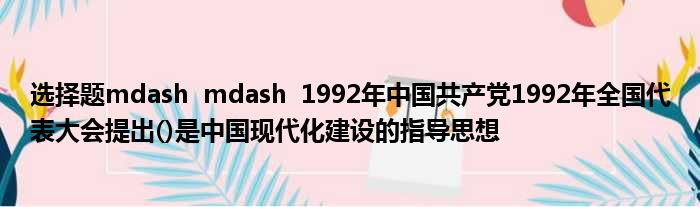 选择题mdash mdash 1992年中国共产党1992年全国代表大会提出()是中国现代化建设的指导思想