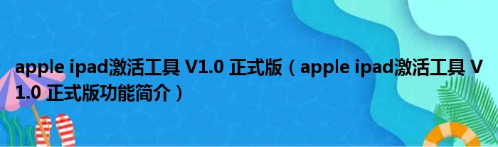 导读 大家好,关于apple ipad激活工具 V1 0 正式版,apple ipad激活工具 V1 0 正式版功能简介这个很多人还不知道,小勒来为大家解答以上的问