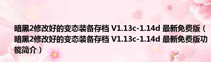 暗黑2修改好的变态装备存档 V1.13c-1.14d 最新免费版(暗黑2修改好的变态装备存档 V1.13c-1.14d 最新免费版功能简介)
