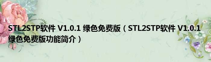 导读 大家好,关于STL2STP软件 V1 0 1 绿色免费版,STL2STP软件 V1 0 1 绿色免费版功能简介这个很多人还不知道,小勒来为大家解答以上的问题,