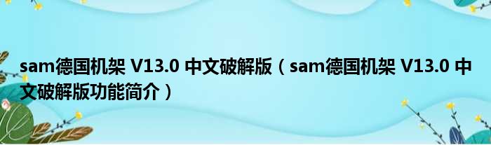 sam德国机架 V13.0 中文破解版(sam德国机架 V13.0 中文破解版功能简介)