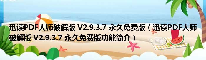 导读 大家好,关于迅读PDF大师破解版 V2 9 3 7 永久免费版,迅读PDF大师破解版 V2 9 3 7 永久免费版功能简介这个很多人还不知道,小勒来为大家