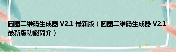 圆圈二维码生成器 V2.1 最新版(圆圈二维码生成器 V2.1 最新版功能简介)