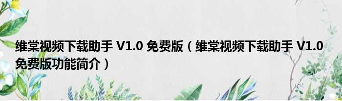 维棠视频下载助手 V1.0 免费版(维棠视频下载助手 V1.0 免费版功能简介)