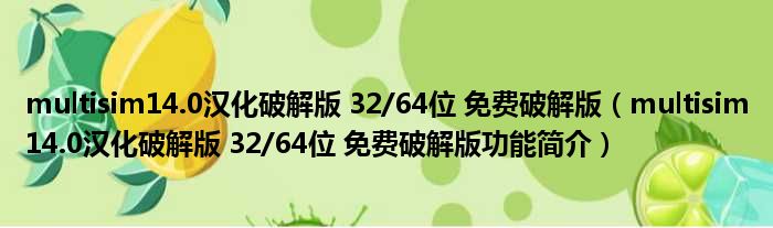 multisim14.0汉化破解版 32/64位 免费破解版(multisim14.0汉化破解版 32/64位 免费破解版功能简介)