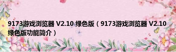 9173游戏浏览器 V2.10 绿色版(9173游戏浏览器 V2.10 绿色版功能简介)