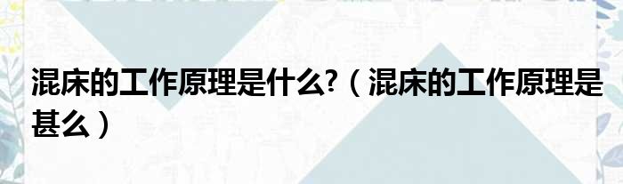 混床的工作原理是什么?(混床的工作原理是甚么)