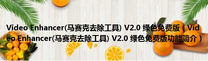 导读 大家好,关于Video Enhancer(马赛克去除工具) V2 0 绿色免费版,Video Enhancer(马赛克去除工具) V2 0 绿色免费版功能简介这个很多人