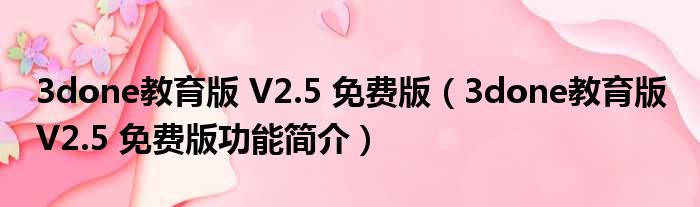 导读 大家好,关于3done教育版 V2 5 免费版,3done教育版 V2 5 免费版功能简介这个很多人还不知道,小勒来为大家解答以上的问题,现在让我们一