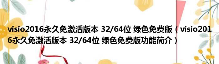 visio2016永久免激活版本 32/64位 绿色免费版(visio2016永久免激活版本 32/64位 绿色免费版功能简介)