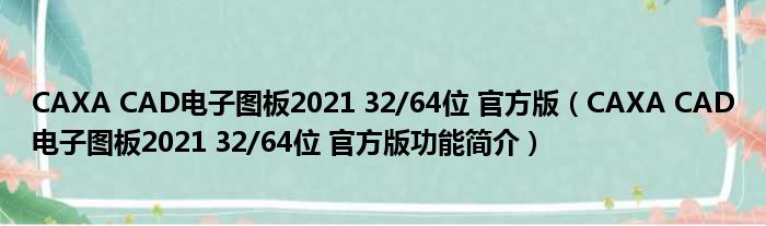 CAXA CAD电子图板2021 32/64位 官方版(CAXA CAD电子图板2021 32/64位 官方版功能简介)