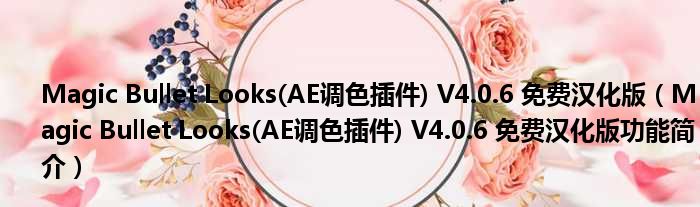 Magic Bullet Looks(AE调色插件) V4.0.6 免费汉化版(Magic Bullet Looks(AE调色插件) V4.0.6 免费汉化版功能简介)