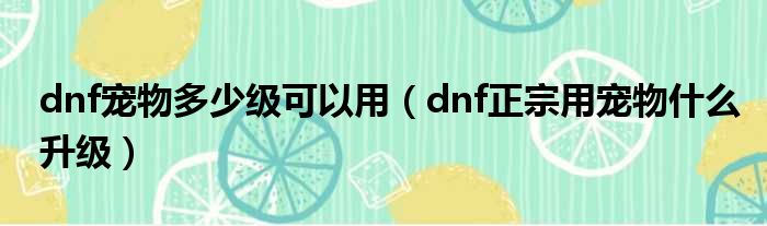 dnf宠物多少级可以用(dnf正宗用宠物什么升级)