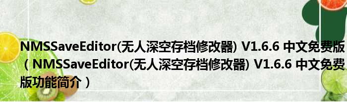 NMSSaveEditor(无人深空存档修改器) V1.6.6 中文免费版(NMSSaveEditor(无人深空存档修改器) V1.6.6 中文免费版功能简介)