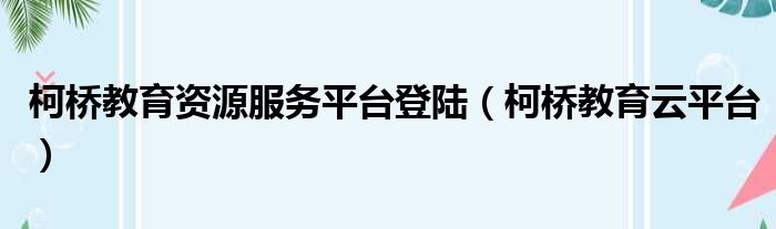 柯桥教育资源服务平台登陆(柯桥教育云平台)
