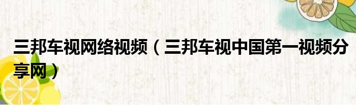 三邦车视网络视频(三邦车视中国第一视频分享网)