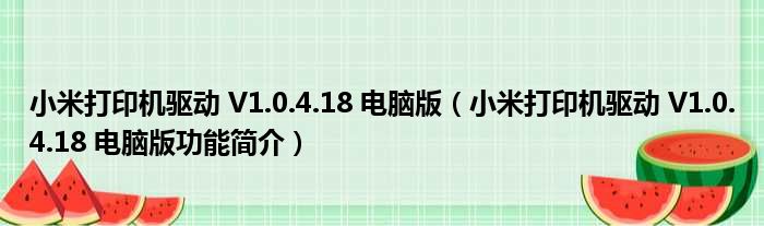 小米打印机驱动 V1.0.4.18 电脑版(小米打印机驱动 V1.0.4.18 电脑版功能简介)