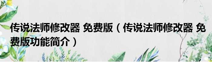 传说法师修改器 免费版(传说法师修改器 免费版功能简介)