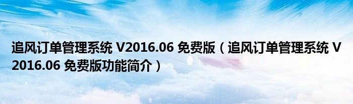 追风订单管理系统 V2016.06 免费版(追风订单管理系统 V2016.06 免费版功能简介)