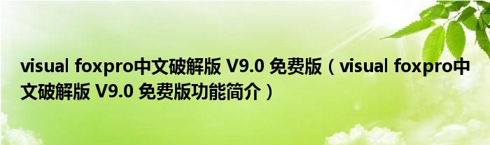 visual foxpro中文破解版 V9.0 免费版(visual foxpro中文破解版 V9.0 免费版功能简介)