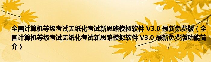导读 大家好,关于全国计算机等级考试无纸化考试新思路模拟软件 V3 0 最新免费版,全国计算机等级考试无纸化考试新思路模拟软件 V3 0 最新免