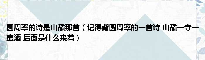 圆周率的诗是山巅那首(记得背圆周率的一首诗 山巅一寺一壶酒 后面是什么来着)