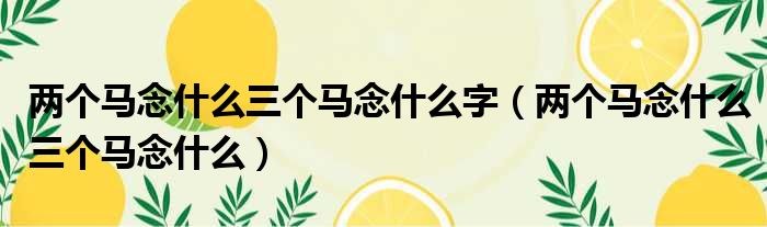 两个马念什么三个马念什么字(两个马念什么三个马念什么)