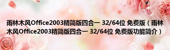 雨林木风Office2003精简版四合一 32/64位 免费版(雨林木风Office2003精简版四合一 32/64位 免费版功能简介)