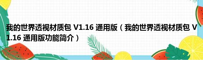 导读 大家好,关于我的世界透视材质包 V1 16 通用版,我的世界透视材质包 V1 16 通用版功能简介这个很多人还不知道,小勒来为大家解答以上的问