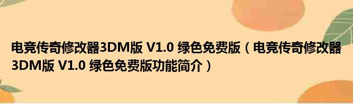 电竞传奇修改器3DM版 V1.0 绿色免费版(电竞传奇修改器3DM版 V1.0 绿色免费版功能简介)