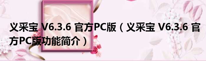 义采宝 V6.3.6 官方PC版(义采宝 V6.3.6 官方PC版功能简介)
