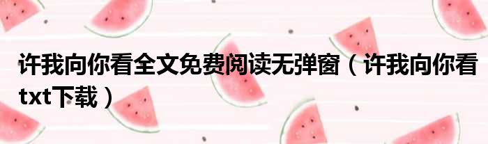 导读 大家好,今天小六子来为大家解答以下的问题,关于许我向你看全文免费阅读无弹窗,许我向你看txt下载这个很多人还不知道,现在让我们一起来看