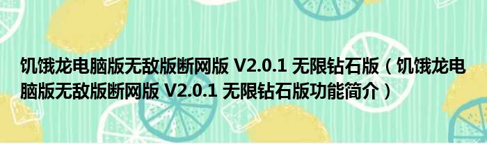 饥饿龙电脑版无敌版断网版 V2.0.1 无限钻石版(饥饿龙电脑版无敌版断网版 V2.0.1 无限钻石版功能简介)