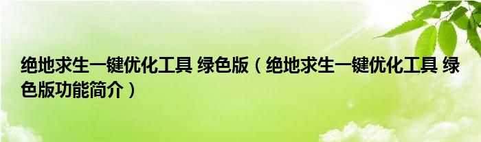 绝地求生一键优化工具 绿色版(绝地求生一键优化工具 绿色版功能简介)
