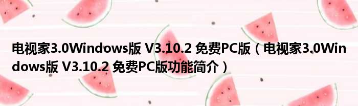 电视家3.0Windows版 V3.10.2 免费PC版(电视家3.0Windows版 V3.10.2 免费PC版功能简介)