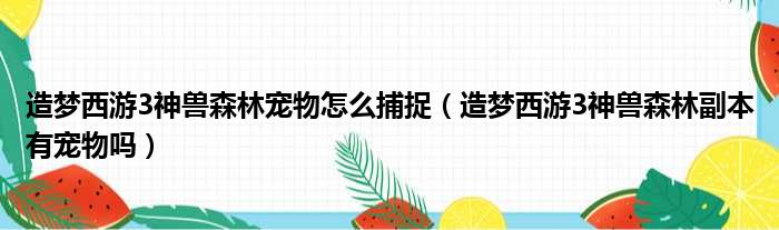 造梦西游3神兽森林宠物怎么捕捉(造梦西游3神兽森林副本有宠物吗)