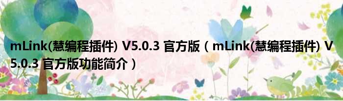 导读 大家好,关于mLink(慧编程插件) V5 0 3 官方版,mLink(慧编程插件) V5 0 3 官方版功能简介这个很多人还不知道,小勒来为大家解答以上的问