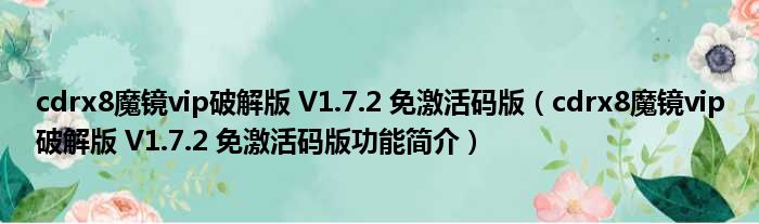 cdrx8魔镜vip破解版 V1.7.2 免激活码版(cdrx8魔镜vip破解版 V1.7.2 免激活码版功能简介)