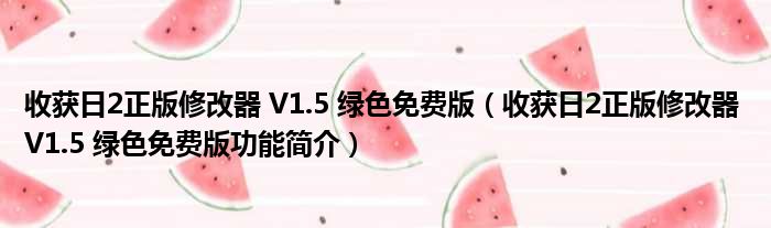 导读 大家好,关于收获日2正版修改器 V1 5 绿色免费版,收获日2正版修改器 V1 5 绿色免费版功能简介这个很多人还不知道,小勒来为大家解答以上