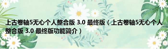 上古卷轴5无心个人整合版 3.0 最终版(上古卷轴5无心个人整合版 3.0 最终版功能简介)