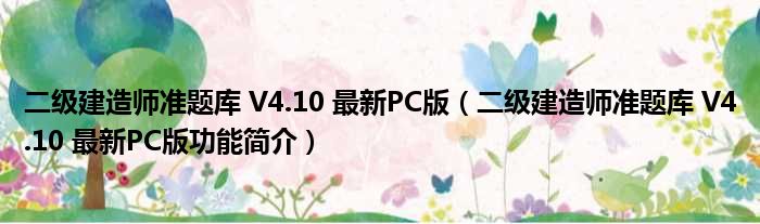 导读 大家好,关于二级建造师准题库 V4 10 最新PC版,二级建造师准题库 V4 10 最新PC版功能简介这个很多人还不知道,小勒来为大家解答以上的问