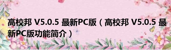 导读 大家好,关于高校邦 V5 0 5 最新PC版,高校邦 V5 0 5 最新PC版功能简介这个很多人还不知道,小勒来为大家解答以上的问题,现在让我们一起