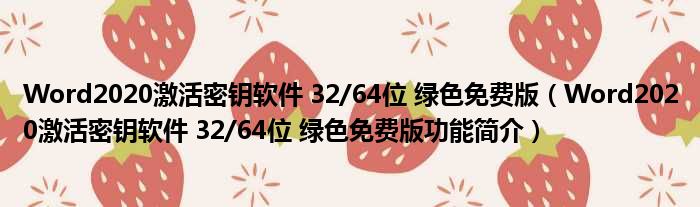 导读 大家好,关于Word2020激活密钥软件 32 64位 绿色免费版,Word2020激活密钥软件 32 64位 绿色免费版功能简介这个很多人还不知道,小勒来为