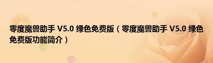 零度魔兽助手 V5.0 绿色免费版(零度魔兽助手 V5.0 绿色免费版功能简介)